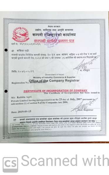 प्यान / भ्याट दर्ताको प्रमाणपत्र: