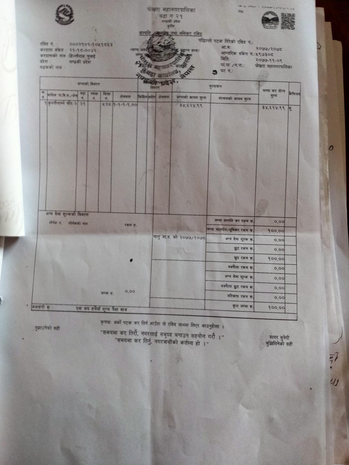 खेति गरेको जग्गाको लालपुर्जाको प्रतिलिपि: