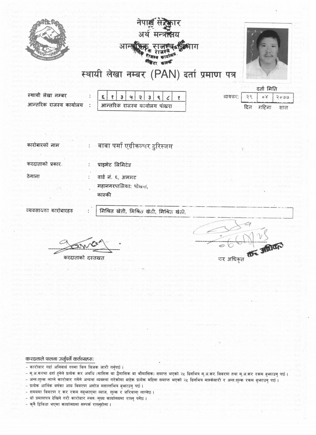 प्यान / भ्याट दर्ता तथा नवीकरण (दुवै फाइल यहाँ अपलोड गर्नुहोस्) :