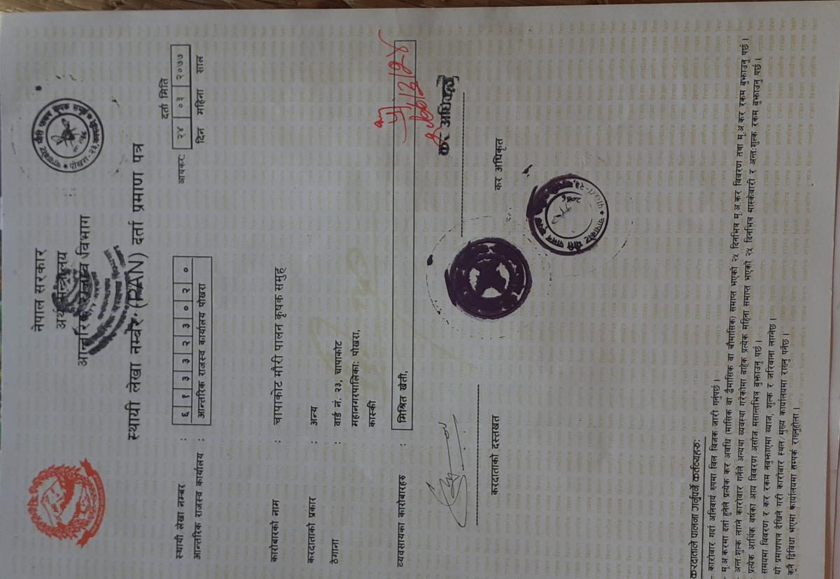 प्यान / भ्याट दर्ता तथा नवीकरण (दुवै फाइल यहाँ अपलोड गर्नुहोस्) :