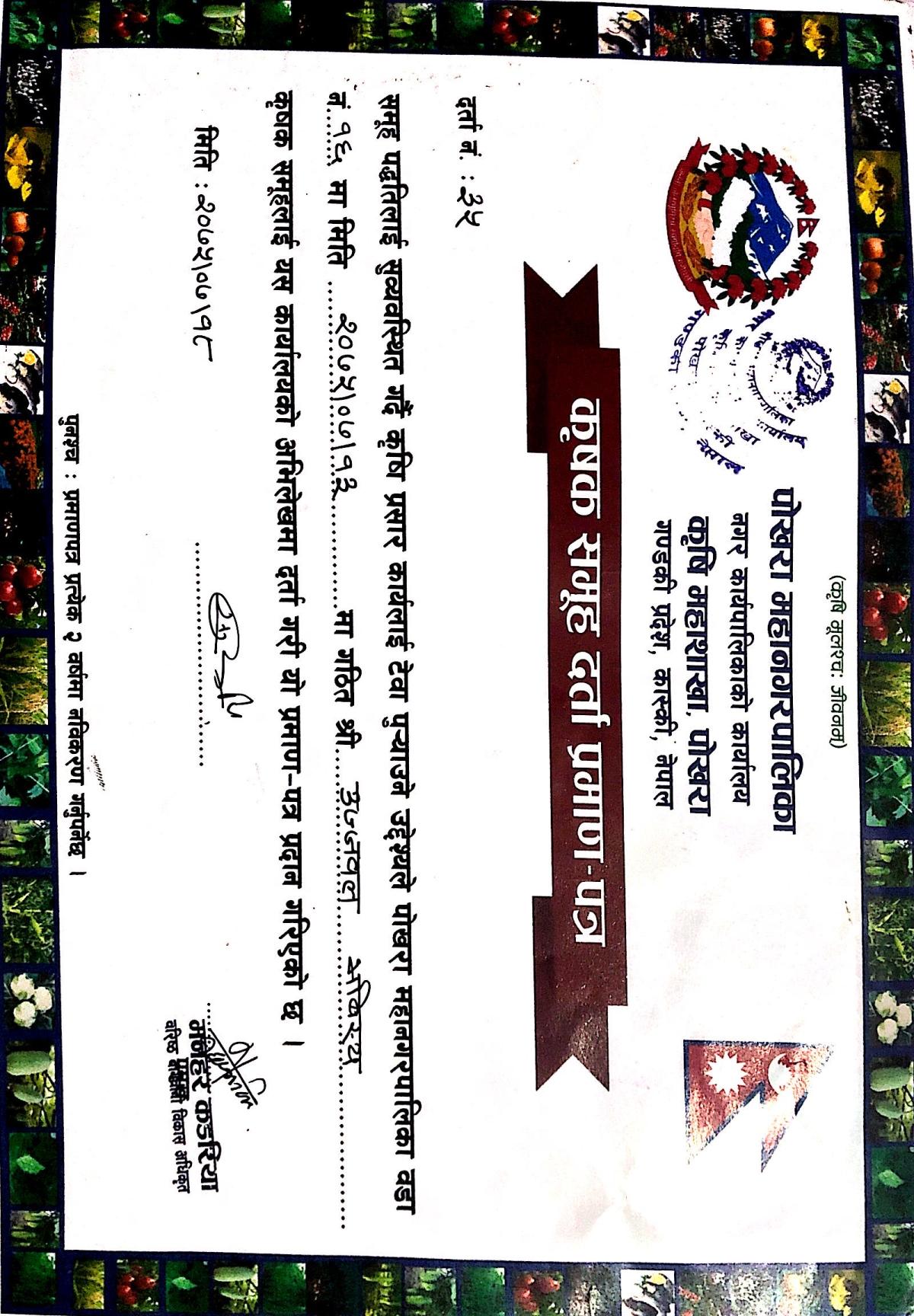 माथि उल्लेखित विवरण सत्य तथ्य छ, सोही प्रकारको कार्यक्रम बिगतमा अन्य निकायबाट प्राप्त नगरेको स्वघोषणा गर्दछु / गर्दर्छौ |