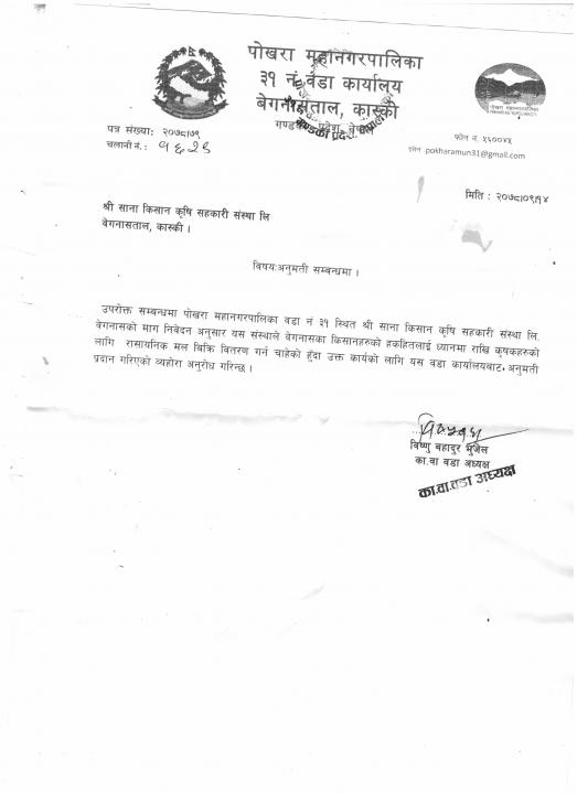 सम्बन्धित वडा कार्यालयको सिफारिस: